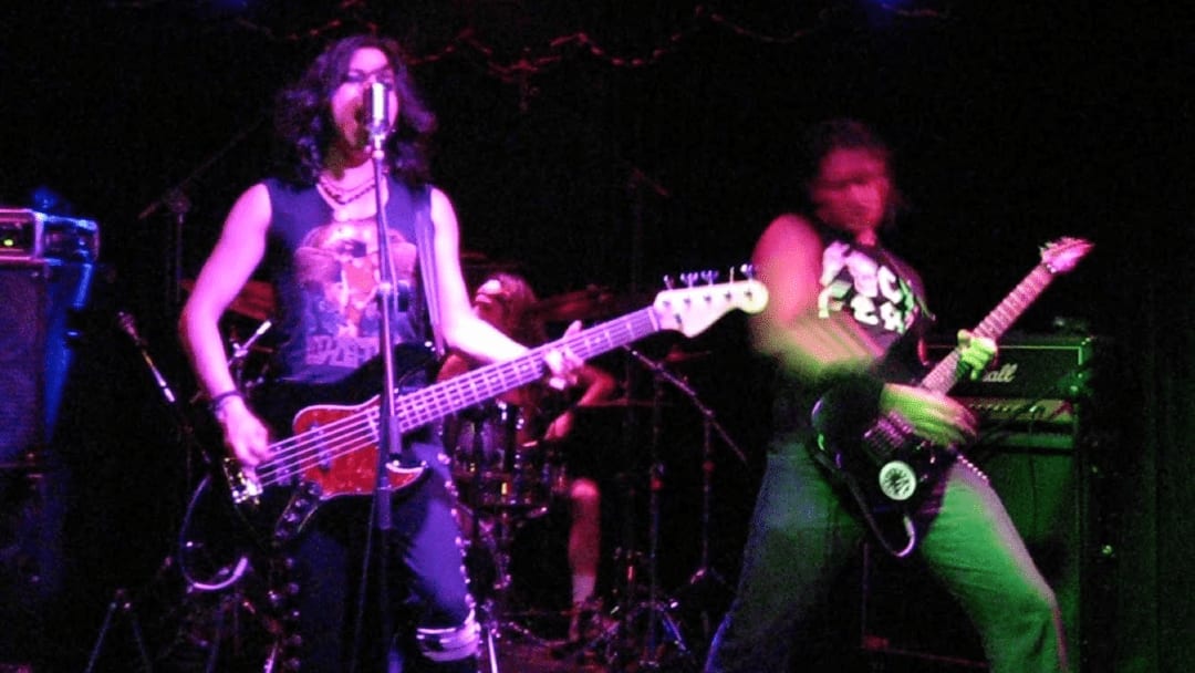 But it was while performing in the conservative city of Toluca with the Billy Idol tribute band Cobraskin that he first faced government repression. As Milton recalls, “We opened up for the Iron Maidens, an all-female tribute band from L.A., and the cops closed the whole venue prior to the concert! We wound up playing at a clandestine warehouse and, again, made it out alive.” Despite his track record as a survivor, Milton reports, “ever since I left Mexico two and a half years ago, I haven’t played with a band (I support a local church, though, which keeps me well oiled).”